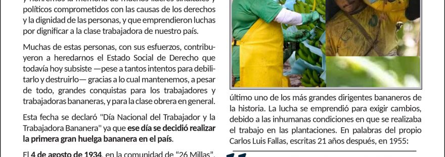 4 de agosto – Día de la Persona Trabajadora Bananera